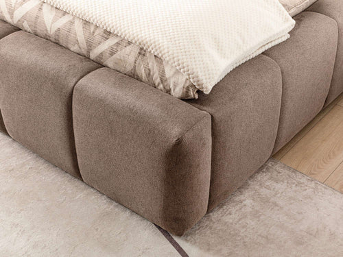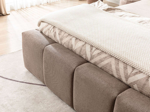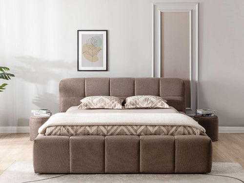 Maak van je slaapkamer een oase van rust en elegantie met het bed Brugge. Dit stijlvolle gestoffeerde bed straalt luxe uit dankzij zijn zachte, hoogwaardige stoffering en zijn imposante design. Het brede hoofdbord met een verfijnd, gewatteerd patroon voegt niet alleen comfort toe, maar maakt ook een statement in elke slaapkamer. Met bed Brugge combineer je stijl en functionaliteit op een unieke manier. Perfect voor wie een stijlvolle slaapkamer wil creëren zonder in te leveren op comfort. Laat je verrassen door de elegante uitstraling en het ultieme slaapgenot van dit prachtige bed!