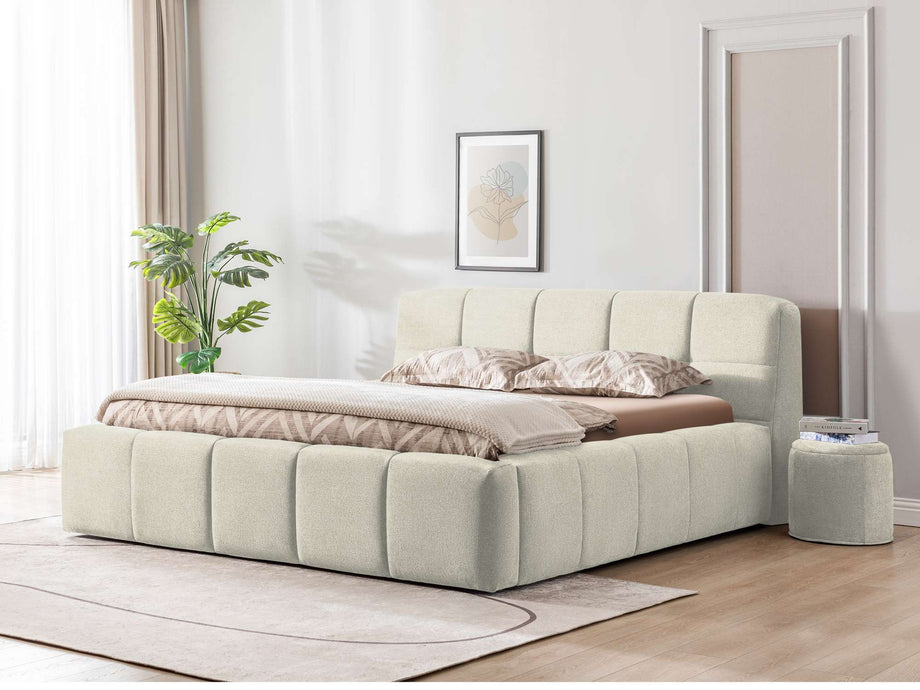 Maak van je slaapkamer een oase van rust en elegantie met het bed Brugge. Dit stijlvolle gestoffeerde bed straalt luxe uit dankzij zijn zachte, hoogwaardige stoffering en zijn imposante design. Het brede hoofdbord met een verfijnd, gewatteerd patroon voegt niet alleen comfort toe, maar maakt ook een statement in elke slaapkamer. Met bed Brugge combineer je stijl en functionaliteit op een unieke manier. Perfect voor wie een stijlvolle slaapkamer wil creëren zonder in te leveren op comfort. Laat je verrassen door de elegante uitstraling en het ultieme slaapgenot van dit prachtige bed!