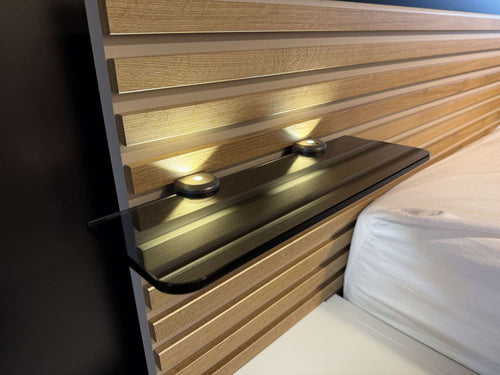 De horizontale belijning in het ontwerp geeft het bed een rustig en strak karakter dat goed te combineren is met diverse slaapkamerstijlen. De instaphoogte van 49 cm zorgt voor een toegankelijke en comfortabele hoogte. Het bed wordt geleverd inclusief twee bijpassende nachtkastjes Bed Leon, waardoor het geheel een uniforme uitstraling krijgt.