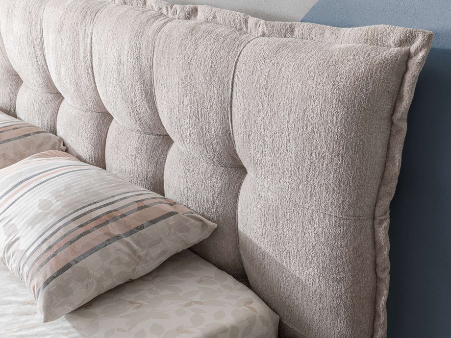 Bed Luik is met een royale hoofdbord, een absolute blikvanger van je slaapkamer! Doordat het hoofdbord subtiel is doorgestikt, creëert het vierkante kussentjes op het hoofdbord waarmee je een luxe en moderne uitstraling krijgt. Het hoofdbord lijkt op een gigantisch kussen, waardoor je gelijk in bed wil duiken en heerlijk kunt wegdromen. Het ledikant geeft je slaapkamer een extra knus gevoel door de lage instap.