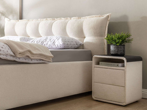 Bed Luik is met een royale hoofdbord, een absolute blikvanger van je slaapkamer! Doordat het hoofdbord subtiel is doorgestikt, creëert het vierkante kussentjes op het hoofdbord waarmee je een luxe en moderne uitstraling krijgt. Het hoofdbord lijkt op een gigantisch kussen, waardoor je gelijk in bed wil duiken en heerlijk kunt wegdromen. Het ledikant geeft je slaapkamer een extra knus gevoel door de lage instap.