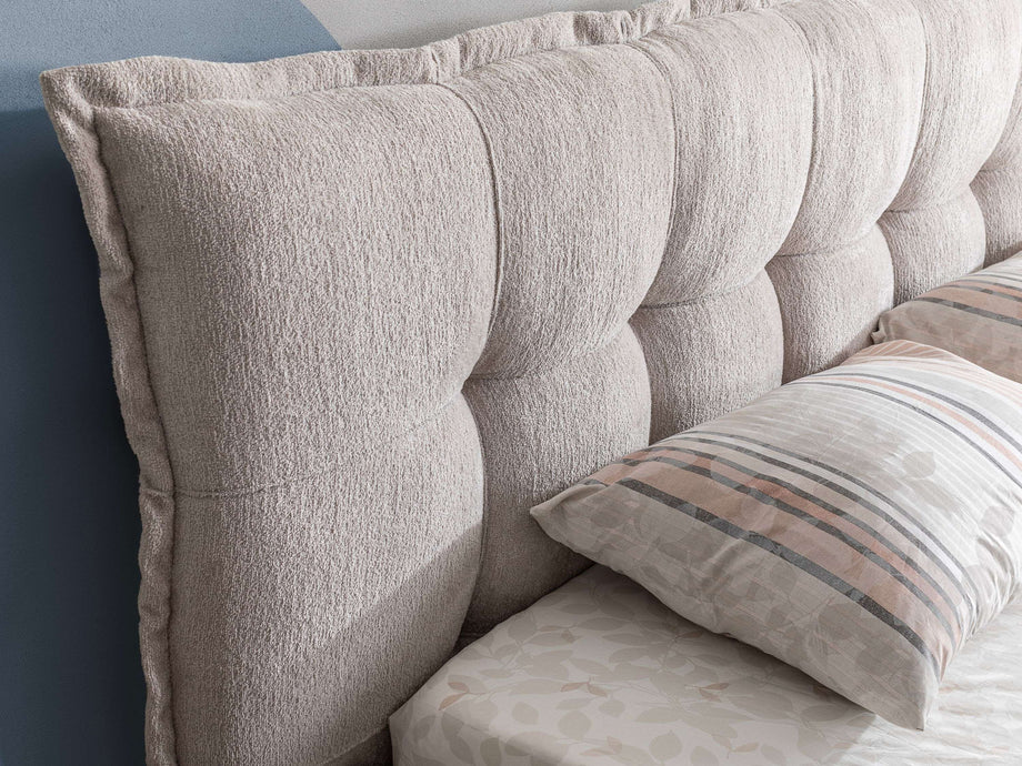 Bed Luik is met een royale hoofdbord, een absolute blikvanger van je slaapkamer. Doordat het hoofdbord subtiel is doorgestikt, creëert het vierkante kussentjes op het hoofdbord waarmee je een luxe en moderne uitstraling krijgt. Het hoofdbord lijkt op een gigantisch kussen, waardoor je gelijk in bed wil duiken en heerlijk kunt wegdromen. Het ledikant geeft je slaapkamer een extra knus gevoel door de lage instap.