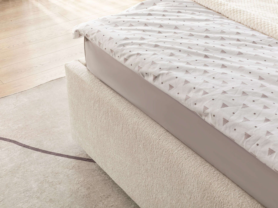 Wat dit bed bijzonder maakt is dat het volledig gestoffeerd is, waardoor het de uitstraling van een boxspring heeft met het comfort van een ledikant.