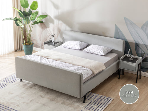 Bed Melle straalt luxe uit dankzij de volledige stoffering, wat het de uitstraling van een boxspring geeft met het comfort van een bed. De hoge poten geven dit bed een elegante en open uitstraling, waardoor het perfect past in een moderne en stijlvolle slaapkamer. Het bed is naar eigen wens samen te stellen, zodat het perfect past bij jouw slaapgewoonten en voorkeuren. Je hebt de keuze uit diverse bedbodems - van vlak tot handmatig verstelbaar of elektrisch - en verschillende matrassen, waaronder pocketveer, latex, koudschuim en traagschuim. Als je al een lattenbodem of matras hebt, is het belangrijk om de afmetingen goed te controleren zodat alles perfect in het bed past. Bed Melle is verkrijgbaar in breedtes van 90 tot 200 cm en is geschikt voor lange mensen, met lengtematen van 200, 210 en zelfs 220 cm.