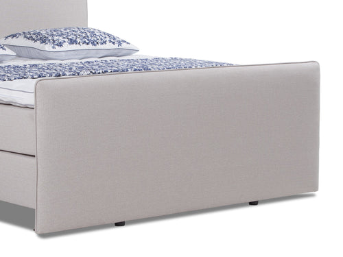 Geen poespas, geen overbodige details, wel stijl en rust: dat is boxspring Dramman. Het egale hoofdbord met afgeronde hoeken is subtiel en simplistisch - en dat maakt juist dat het op een positieve manier in het oog springt. Dramman is daarnaast het perfecte canvas om een eigen draai aan te geven kies uit een groot aantal kleuren, stofsoorten en pootjes en stijl de boxspring naar je eigen smaak af. Maak de boxspringcombinatie compleet door een bijpassend voetbord aan je nieuwe bed toe te voegen.