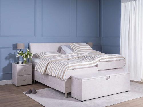 De boxspring Ingmar is ook leverbaar in een vlakke uitvoering.