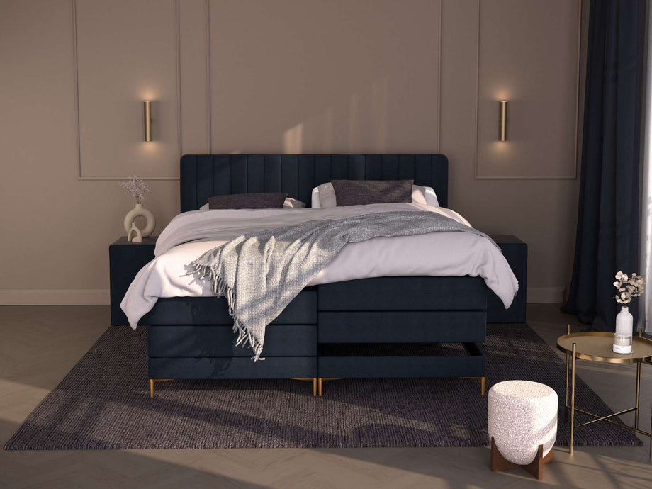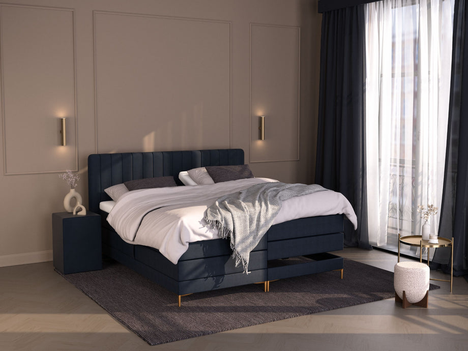 Je hebt bij deze tijdloze boxspring keuze uit een groot aantal kleuren, stoffen, lederlooks en pootjes. Je slaapt op een combinatie van een pocketveeronderstel met 260 pocketveren per vierkante meter en een pocketveermatras met 300 pocketveren of 500 pocketveren per vierkante meter. Alle boxspring matrassen zijn uitgerust met zeven comfortzones, voor maximale ondersteuning van onder meer hoofd, schouders, heupen en benen. De kwalitatief hoogwaardige luxe topper maakt de comfortabele ondersteuning voor je lichaam compleet.