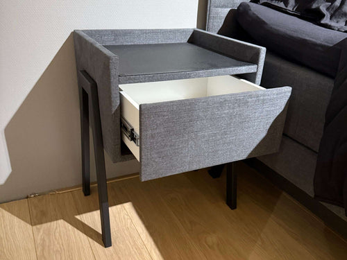 De boxspring staat op Poot 720 en wordt geleverd met twee nachtkastjes van het type Port.