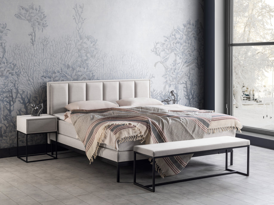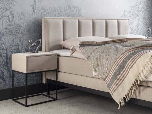 Boxspring Marseille is een elegant bed met een hedendaagse uitstraling. Het doorgestikte hoofdbord is verdeeld in grote, vierkante vlakken, waarmee Marseille een moderne look krijgt. De boxen en het elegante, zwevende hoofdbord worden gestoffeerd in dezelfde kleur en stofsoort. Welke kleur en stofsoort dit zijn, bepaal je zelf! Maak je van boxspring Marseille het smaakvolle middelpunt van je slaapkamer. Dankzij het tijdloze karakter en de mogelijkheid om de boxspring naar je eigen voorkeur samen te stellen, past Marseille in iedere slaapkamer.