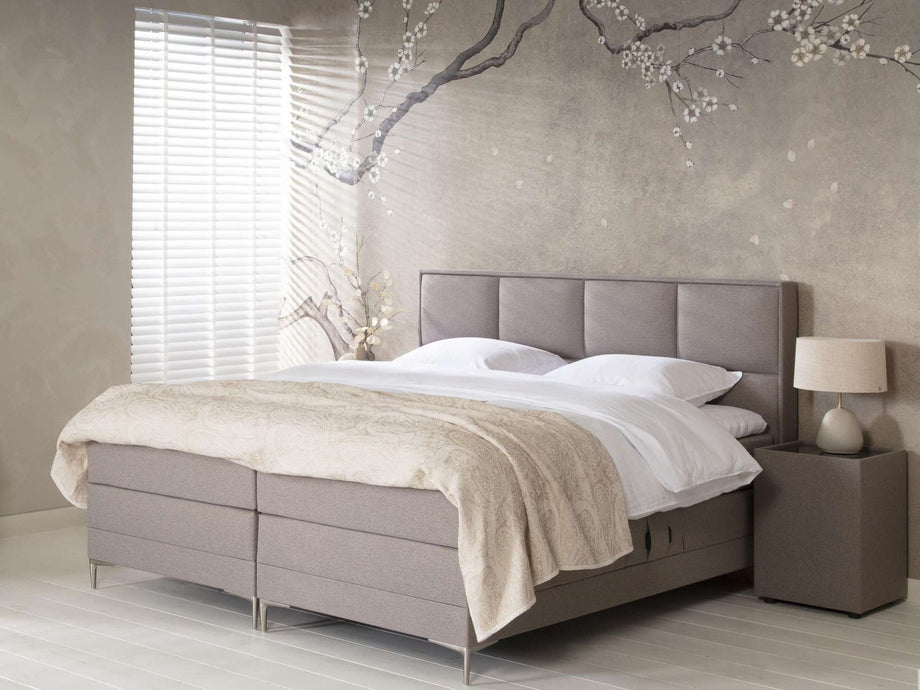 De boxspring Sundfall is ook leverbaar in een vlakke uitvoering.