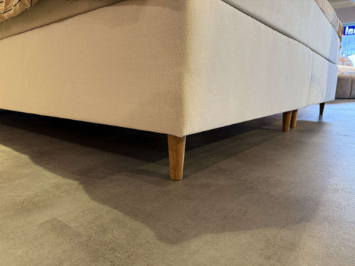 Boxspring Upsalla beschikt niet over opbergruimte en wordt aangeboden in het kader van de totale leegverkoop in Arnhem. In de showroom wordt deze uitvoering geleverd inclusief twee keer nachtkastje Hamar. De boxspring is zelf af te halen bij de winkel en de montage gebeurt in eigen beheer.