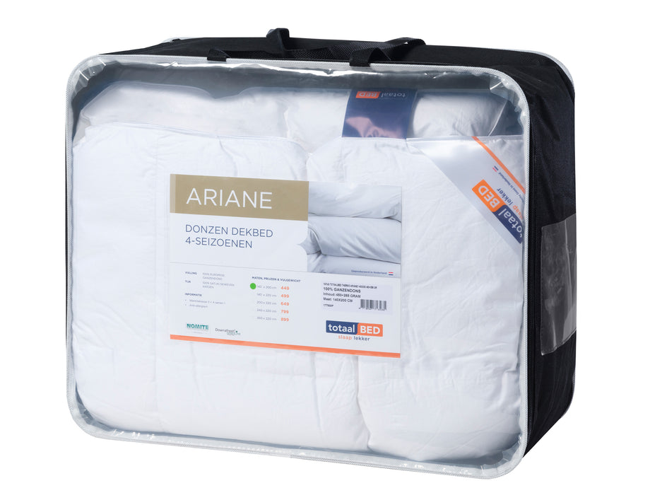 Dekbed Ariane is een luxueus en lichtgewicht dekbed dat zich soepel om je heen vormt voor een comfortabele nachtrust. De vulling van 100% Europese ganzendons zorgt voor uitstekende vochtregulatie en warmte-isolatie, zonder benauwd aan te voelen. Hierdoor blijft het dekbed altijd op de juiste temperatuur, ongeacht het seizoen.