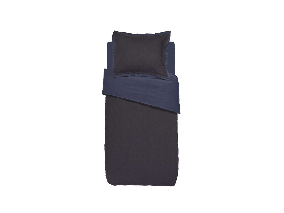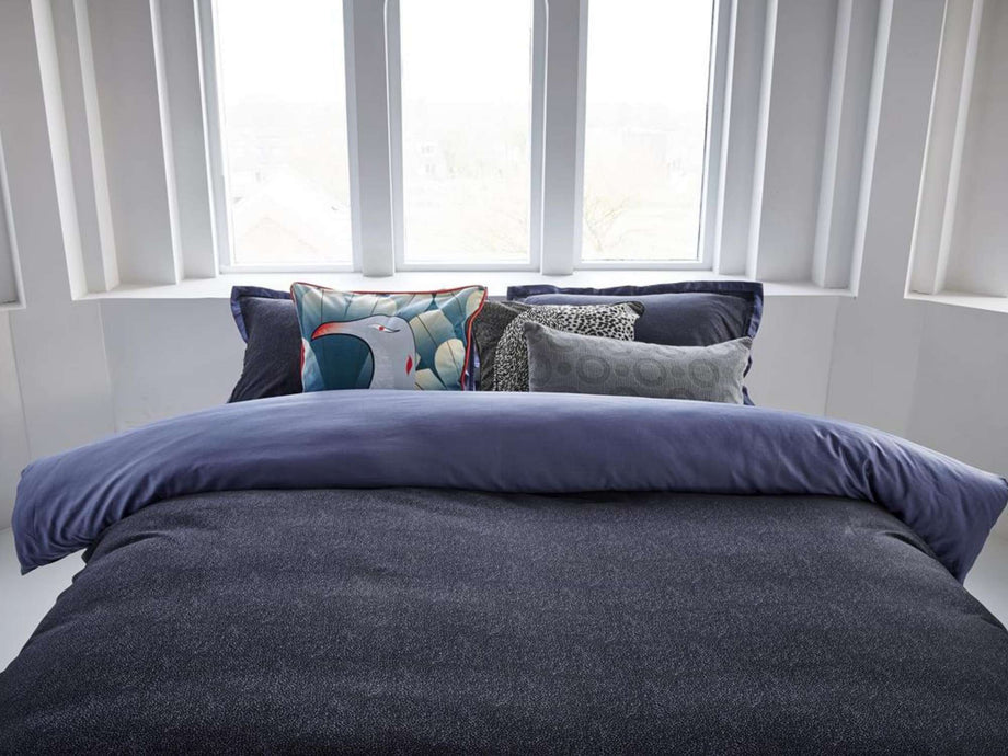 Dekbedovertrek Calligraphy Bird maakt deel uit van de exclusieve Extinct Animals bedding collectie van Moooi en ademt verfijning en elegantie. Het dessin is geïnspireerd op de kleinste en zachtste donsveren van de uitgestorven Calligraphy Bird, waarbij gelaagdheid en diepgang centraal staan. Dankzij de subtiele jacquardweving op de voorzijde krijgt het overtrek een luxe textuur met een rijke uitstraling. De diepe, moderne kleuren zorgen voor een eigentijds karakter, terwijl de achterzijde in effen katoensatijn rust en balans toevoegt. De kussenslopen zijn afgewerkt met een dubbele Oxford-rand voor een extra stijlvol detail.