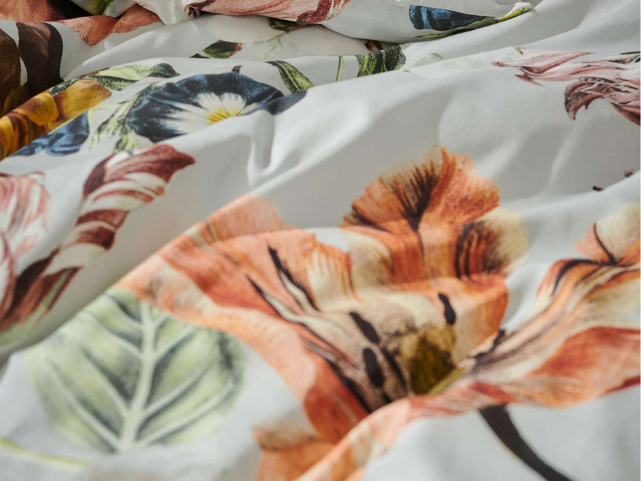 Het dekbedovertrek is gemaakt van 100% katoen satijn, een stof die bekendstaat om zijn lichte glans, zijdezachte touch en ademende, vocht absorberende eigenschappen. Naast comfort biedt het ook praktisch gemak: het dekbedovertrek is wasbaar tot 60 graden, geschikt voor de droger en voorzien van een extra lange instopstrook van 40 cm, waardoor het gemakkelijk onder het matras blijft zitten.