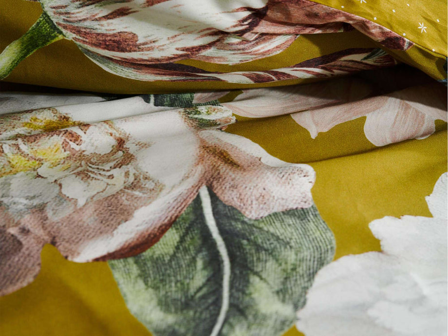 Met het omkeerbare dekbedovertrek Filou geef je je slaapkamer in een handomdraai een nieuwe look. De ene zijde is bedrukt met prachtige, gedetailleerde bloemen in zachte kleuren, terwijl de andere zijde is voorzien van een verfijnd grafisch patroon. Dit veelzijdige ontwerp brengt een vleugje luxe en stijl in je interieur.