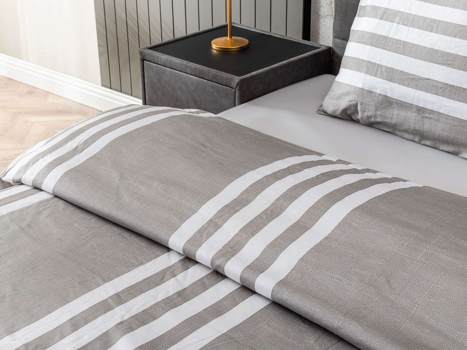 Ontwaak elke ochtend onder de luxe zachtheid van ons bedrukte dekbedovertrek, vervaardigd uit 100% biologisch katoen in een satijnbinding. Deze verfijnde weeftechniek zorgt voor een subtiele glans en een zijdezachte touch, terwijl het natuurlijke katoen je huid laat ademen en het hele jaar door comfort biedt.