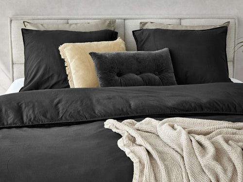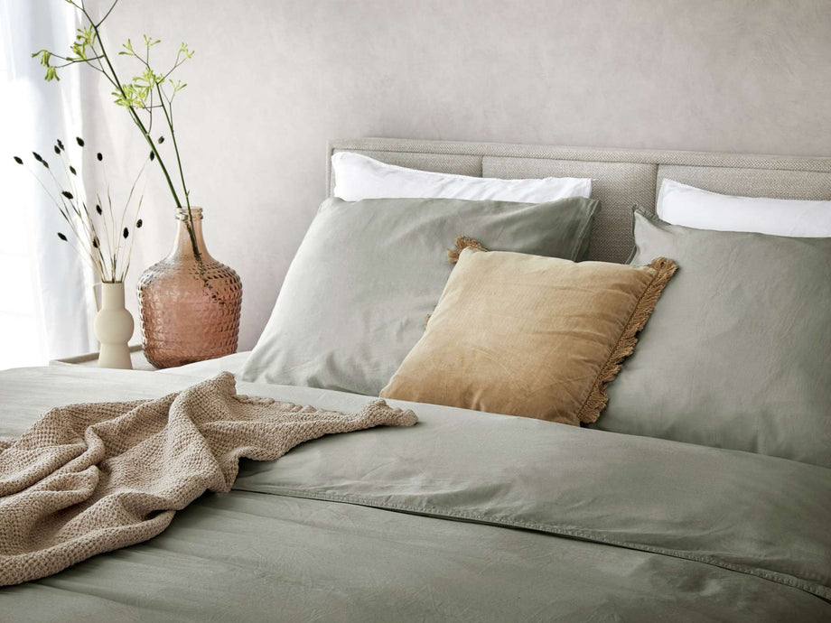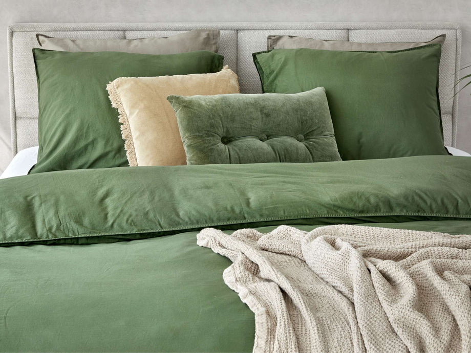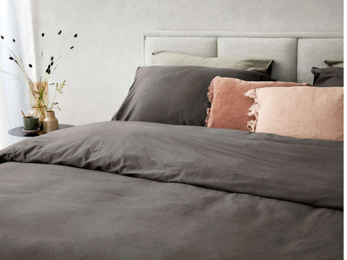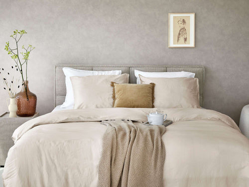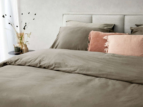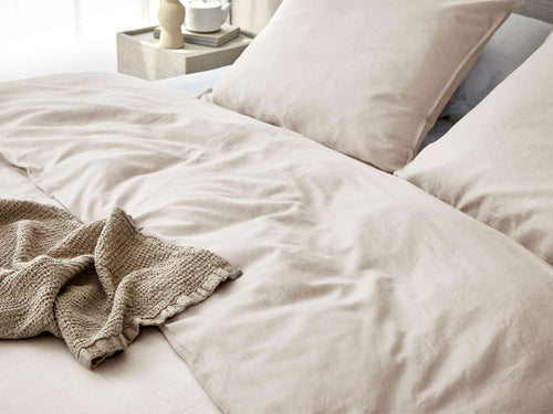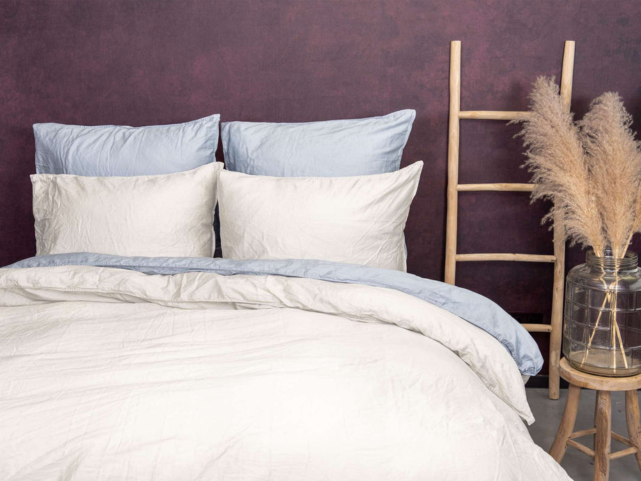 Dekbedovertrek Noa straalt rust en eenvoud uit dankzij het egale, natuurlijk ogende ontwerp. Het overtrek is vervaardigd van 100% katoensatijn, een stof die geweven is met een hoge draaddichtheid van 300TC (thread count). Dit zorgt voor een extra zachte en soepele textuur, terwijl de subtiele glans het overtrek een luxe uitstraling geeft. Voor een unieke finishing touch is de stof behandeld met een speciale enzymwashing, wat het dekbedovertrek een verfijnde faded vintage look verleent.