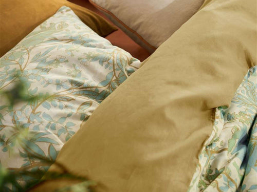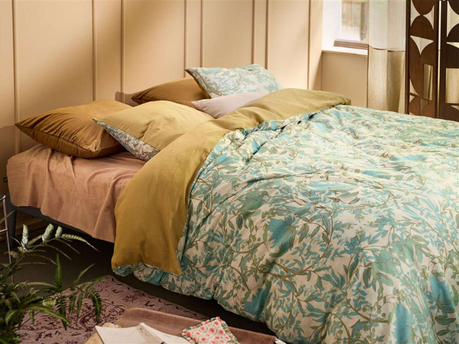 Dekbedovertrek Once Upon straalt een verfijnde elegantie uit met zijn rijke, botanische print in zachte tinten groen, blauw en crème. Het sierlijke ontwerp doet denken aan een sprookjesachtig boslandschap en voegt een nostalgische en warme sfeer toe aan je slaapkamer. De combinatie van klassieke motieven en rustgevende kleuren maakt dit dekbedovertrek ideaal voor wie houdt van een romantische, tijdloze uitstraling.