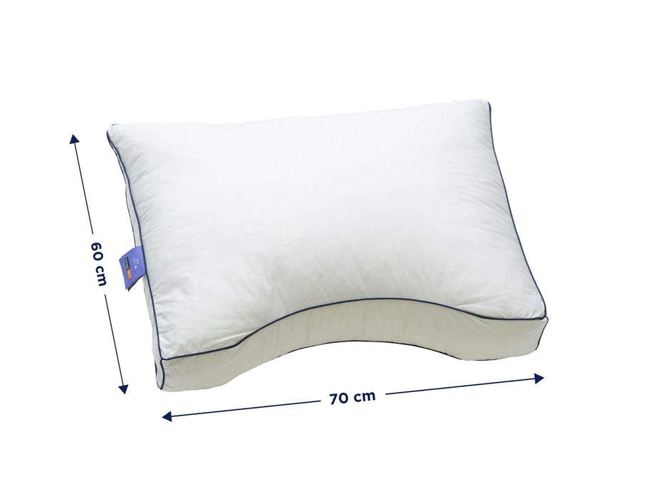 De schoudercontour van dit hoofdkussen zorgt ervoor dat de schouder comfortabel kan liggen en het hoofd en de nek de juiste ondersteuning krijgen. Elin is geschikt voor mensen met een bovengemiddelde schouderbreedte en voor mensen die van een stevig ligcomfort houden.