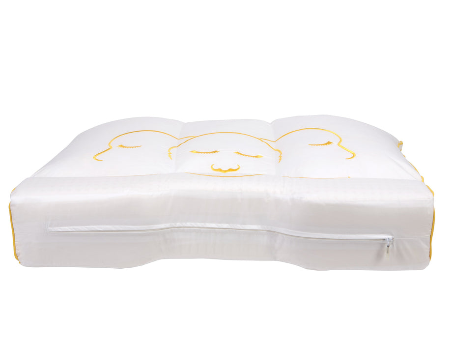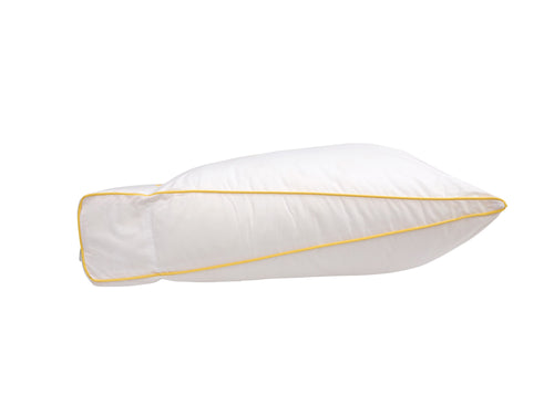 De tijk van het Silvana kussen is vervaardigd uit 100% hoogwaardig katoen. Dankzij de ritsluiting is het hoofdkussen navulbaar. De buitenkant is behandelt met Aegis® waardoor huisstofmijt, schimmels en bacteriën geen kans hebben. Hierdoor is de Saphir zeer geschikt voor mensen met een huisstofmijtallergie. De buitenkant is afgezet met een gele bies en borduur.