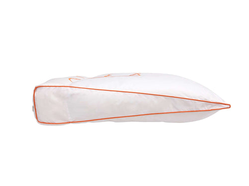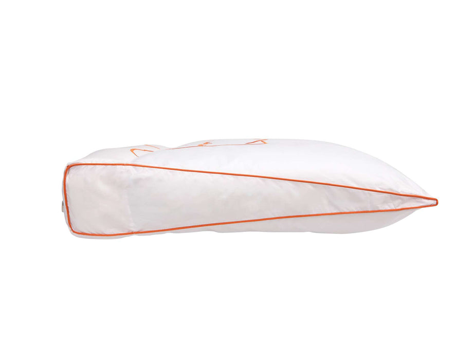 De tijk van het Silvana kussen is vervaardigd uit 100% hoogwaardig katoen. Dankzij de ritsluiting is het hoofdkussen navulbaar. De buitenkant is behandelt met Aegis® waardoor huisstofmijt, schimmels en bacteriën geen kans hebben. Hierdoor is de Saphir zeer geschikt voor mensen met een huisstofmijtallergie. De buitenkant is afgezet met een oranje bies en borduur.