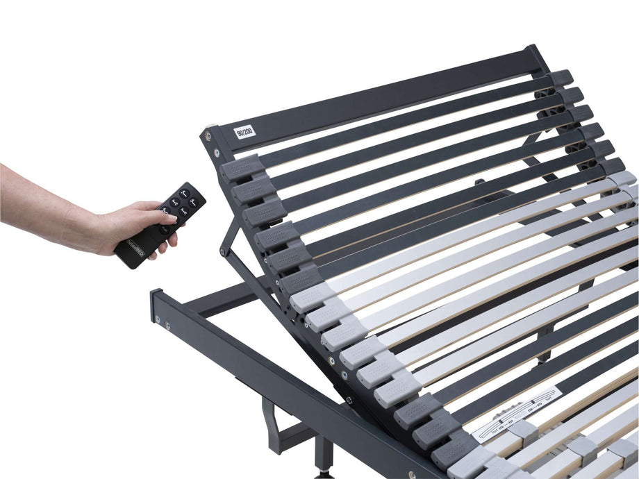 Goede elektronische lattenbodem en voor een redelijke prijs. Niet alleen hoofd en voeten eind kan om hoog gedaan worden (met een draadloze zapper). Ook het midden stuk gaat omhoog als je voeteneind om hoog doet. Ideaal als je je bed wilt opmaken, dan hoef je niet zo te bukken.