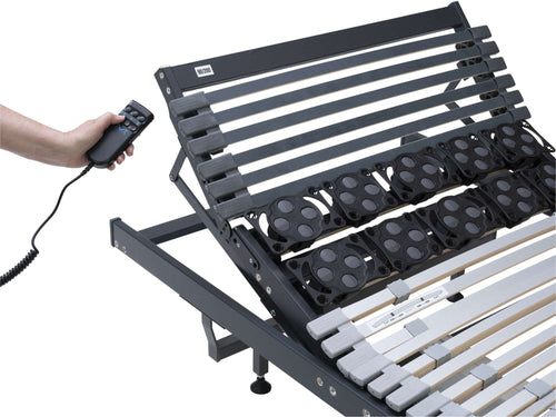 Met de Medi 5000 elektrisch verstelbare bedbodem van totaalBED ben je verzekerd van een goede nachtrust, iedere nacht opnieuw. De Medi 5000 beschikt namelijk over maar liefst vijf verschillende comfortzones en een extra verstevigd middenstuk, goed voor optimale ondersteuning voor je rug gedurende de nacht. Bovendien beweegt de comfortzone die is ingericht op je schouder, soepeltjes mee met je nachtelijke draaibewegingen. Deze elektrische uitvoering van de Medi 5000 bedbodem is voorzien van een 6500 Newton motor, waarmee je met de afstandsbediening (met draad) altijd eenvoudig de gewenste ligstand in kan stellen. Ultiem slaapcomfort!