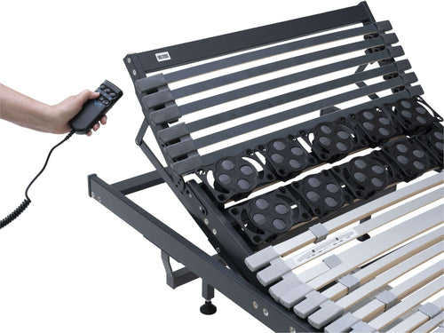 Met de Medi 5000 elektrisch verstelbare bedbodem van totaalBED ben je verzekerd van een goede nachtrust, iedere nacht opnieuw. De Medi 5000 beschikt namelijk over maar liefst vijf verschillende comfortzones en een extra verstevigd middenstuk, goed voor optimale ondersteuning voor je rug gedurende de nacht. Bovendien beweegt de comfortzone die is ingericht op je schouder, soepeltjes mee met je nachtelijke draaibewegingen. Deze elektrische uitvoering van de Medi 5000 bedbodem is voorzien van een 6500 Newton motor, waarmee je met de afstandsbediening (met draad) altijd eenvoudig de gewenste ligstand in kan stellen. Ultiem slaapcomfort.