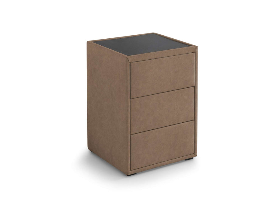 Nachtkastje Dijon combineert moderne elegantie met maximale opbergruimte dankzij zijn drie ruime lades. De luxe stoffen bekleding en het strakke zwarte metalen frame geven dit nachtkastje een stijlvolle en eigentijdse uitstraling die perfect past in een moderne slaapkamer.