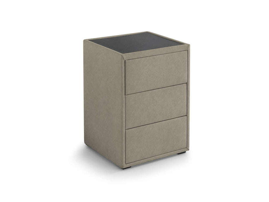 Nachtkastje Dijon combineert moderne elegantie met maximale opbergruimte dankzij zijn drie ruime lades. De luxe stoffen bekleding en het strakke zwarte metalen frame geven dit nachtkastje een stijlvolle en eigentijdse uitstraling die perfect past in een moderne slaapkamer.