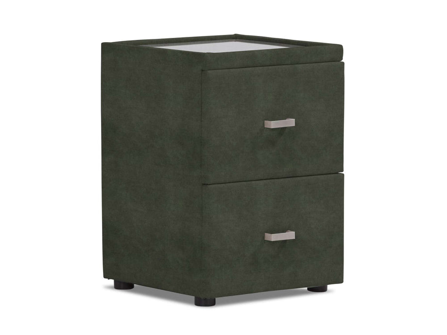 Nachtkastje Larvik combineert functionaliteit met een modern en stijlvol ontwerp. Dit nachtkastje beschikt over twee ruime lades die bekleed zijn met een zachte stof, ideaal om je persoonlijke spullen georganiseerd en binnen handbereik te houden. De geïntegreerde glazen of metalen bovenplaat voegt een luxe uitstraling toe en is bovendien eenvoudig schoon te maken.
