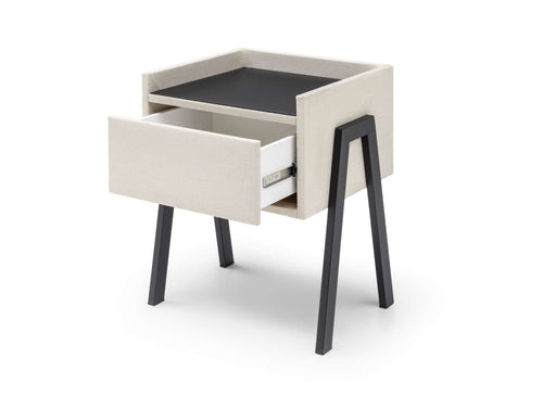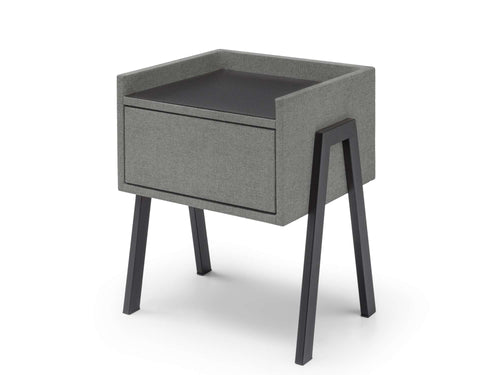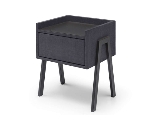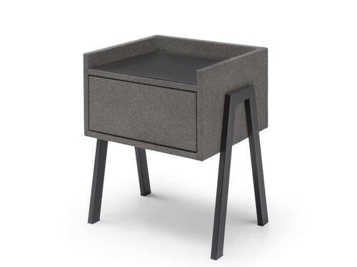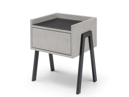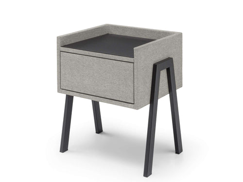 Nachtkastje Port is een moderne blikvanger die direct een stijlvolle touch aan je slaapkamer toevoegt! Het strakke design, gecombineerd met het zacht gestoffeerde frame en het donkere bovenblad, straalt eigentijdse elegantie uit. Dit nachtkastje biedt niet alleen een fraaie uitstraling, maar ook veel praktische ruimte dankzij de ruime lade en het stevige bovenblad, ideaal om al je essentials netjes op te bergen en bij de hand te hebben. De slanke, zwarte poten geven nachtkastje Port een luchtige uitstraling, perfect voor een moderne slaapkamer waar stijl en functionaliteit samenkomen.