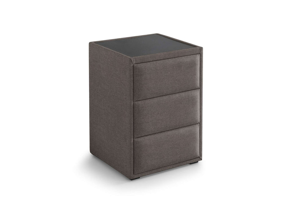 De bovenkant is afgewerkt met een stijlvol metalen afdekplaat, waardoor het nachtkastje niet alleen functioneel is maar ook een elegante toevoeging aan je slaapkamer. Perfect voor wie op zoek is naar een combinatie van comfort en klasse in zijn of haar interieur.