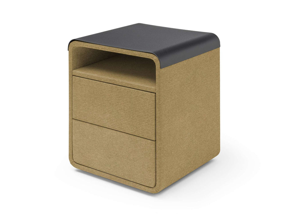 Nachtkastje Fons is de perfecte aanvulling op je slaapkamer. Met zijn strakke, moderne design en subtiele afwerking voegt hij een vleugje elegantie toe aan elke ruimte. De beklede randen geven een zachte, luxe uitstraling, terwijl de metalen afdekplaat zorgt voor een verfijnde look en eenvoudig onderhoud.