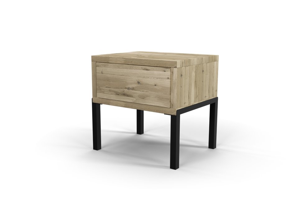 Het houten nachtkastje Wells is ideaal te combineren met ledikanten Hull, Manchester en Leeds. Het nachtkastje heeft een eikenhouten kleur en een lade om spullen in op te bergen. Het combineren met de eikenhouten ledikanten van totaalBED zorgt voor een complete en industriële uitstraling.