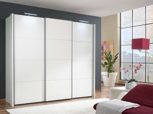 De Alvaro schuifdeurkast is verkrijgbaar in de kleuren wit, zwart, eiken sagerau en truffel eiken. De kast is ook verkrijgbaar met spiegeldeuren of glasdeuren.