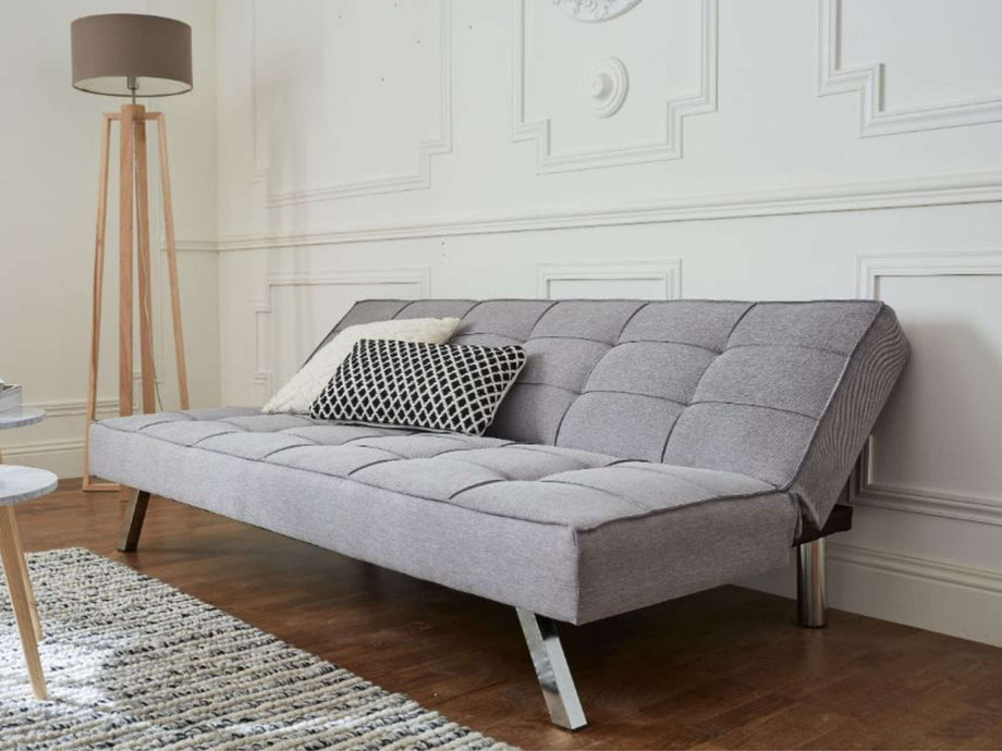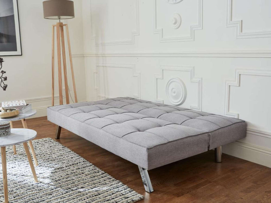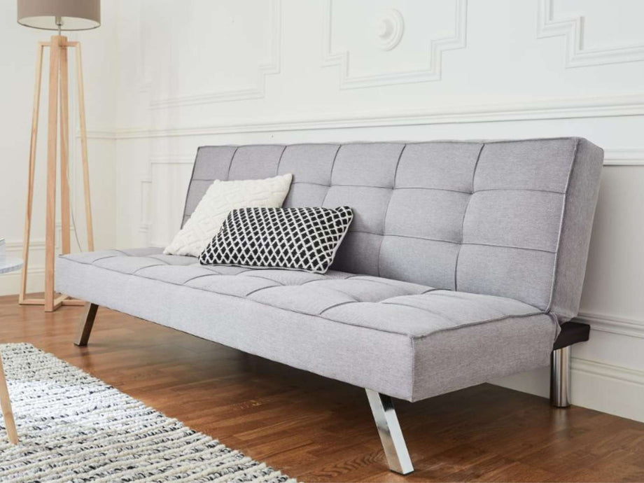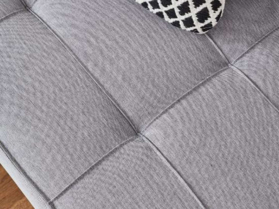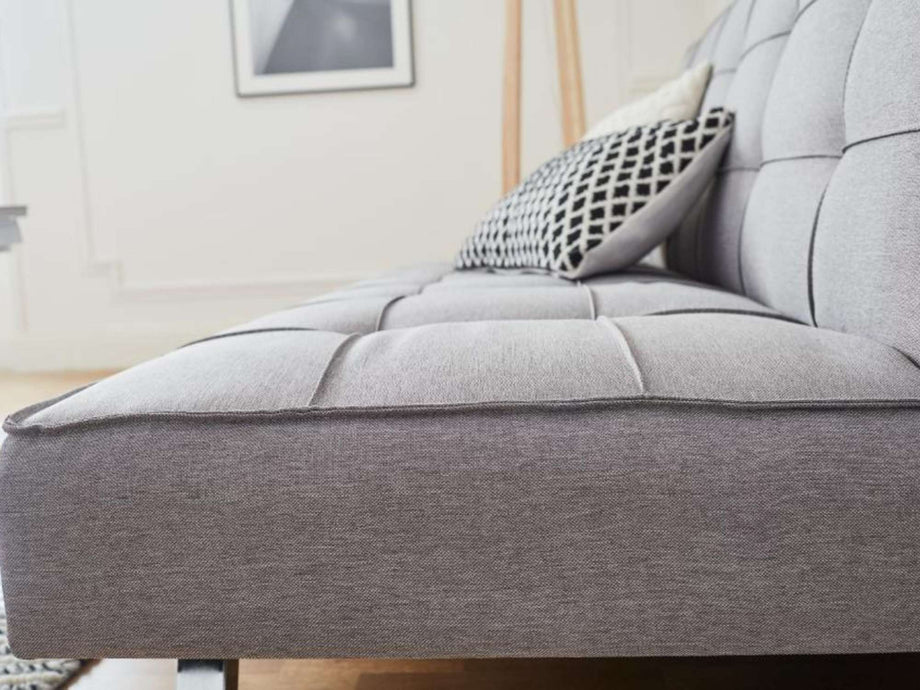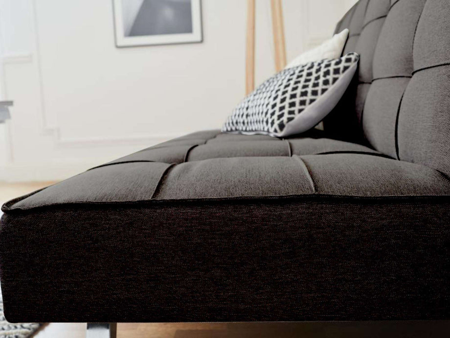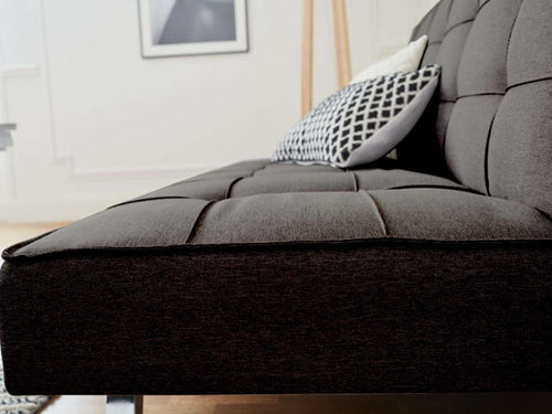 Met een gewicht van 30 kg en een maximale belasting per zitplaats van 100 kg, biedt deze slaapbank zowel stevigheid als comfort. Hoewel de slaapbank geen armleuningen heeft, is hij uitgerust met een click-clack mechanisme en een 4 cm dikke gerecyclede schuimvulling plus 1 cm nieuw schuim, wat bijdraagt aan het comfortabele zitgevoel.