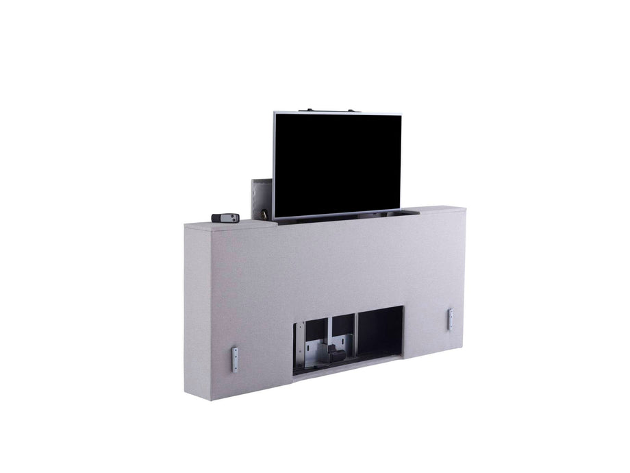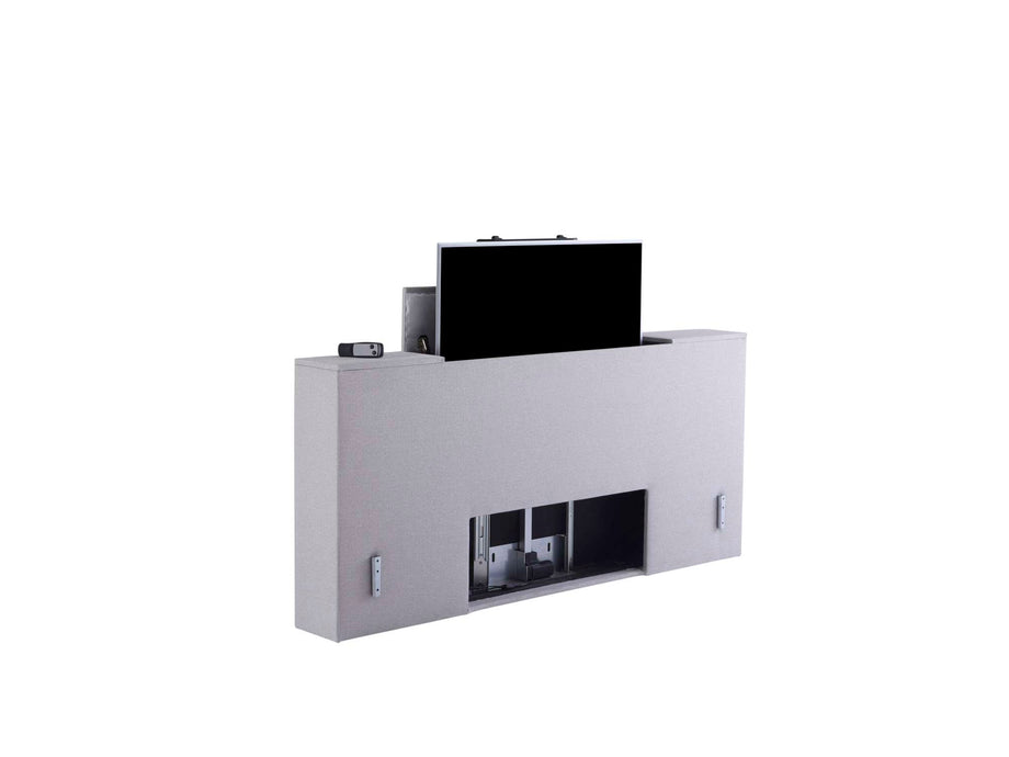 Het voetenbord met TV-lift (exclusief televisie) is verkrijgbaar in de maten 120, 140, 160, 180, 200 en 240 cm in alle stofsoorten en kleuren.