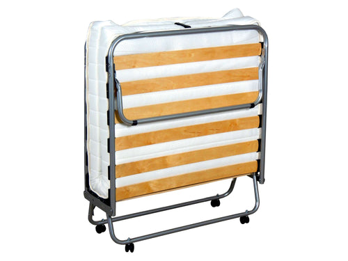 Dit ruimtebesparende bed is gemakkelijk in te klappen, moeiteloos te verplaatsen en eenvoudig op te bergen dankzij de inklapbare poten, wieltjes en zijn lichte gewicht van 18,5 kg. De poten, wieltjes en de voet van het vouwbed zijn van kunststof.